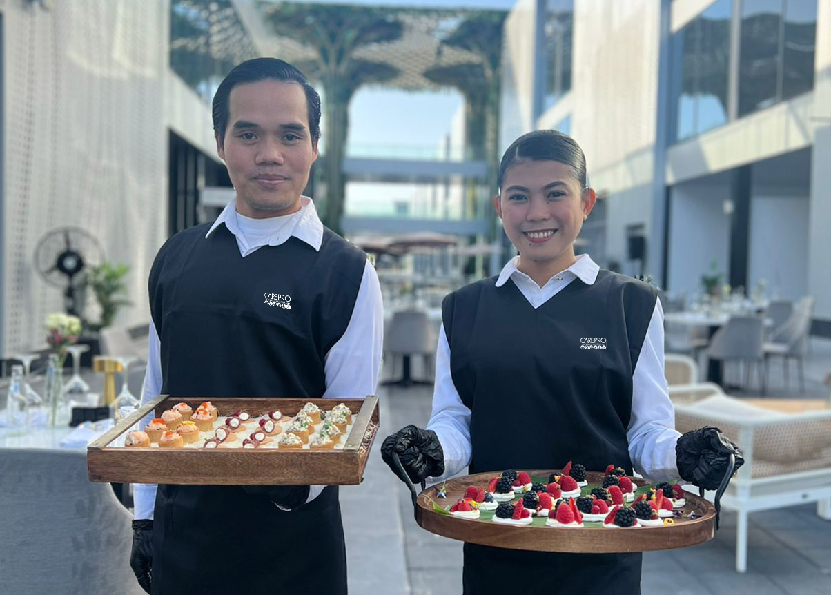 طاقم متخصص في تقديم الطعام والشراب باحترافية.